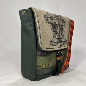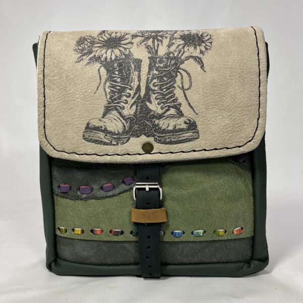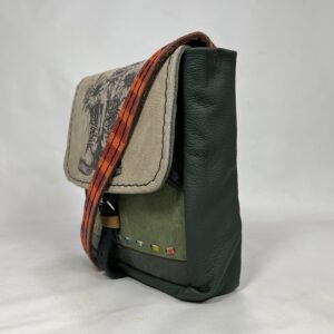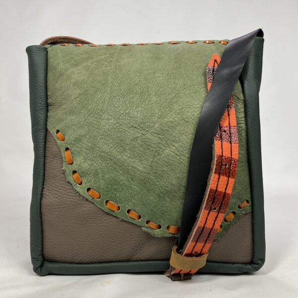 Ta torebka powstała w pracowni rzemieślniczej jako pojedynczy, niepowtarzalny egzemplarz. Każdy model tworzony jest z połączenia różnych skór naturalnych, faktur i detali, dzięki czemu nie istnieją dwie identyczne sztuki.