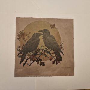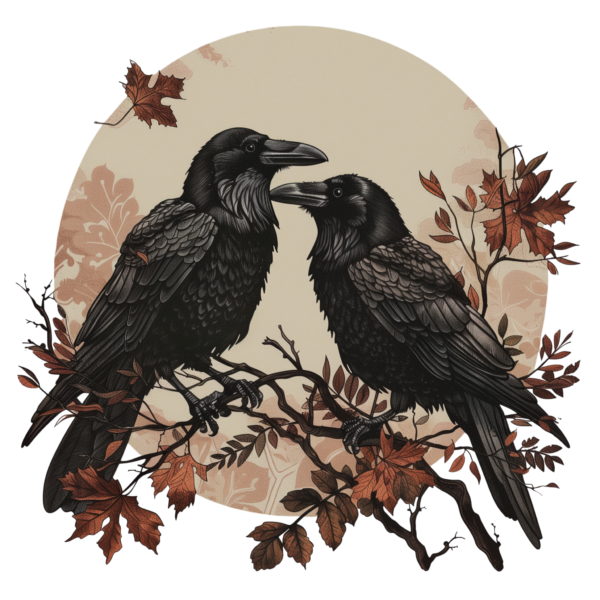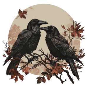 Krucza Straż to skórzana naszywka z autorskim motywem dwóch kruków osadzonych w leśnej, lekko mrocznej oprawie. Projekt został przygotowany z myślą o wyrazistym nadruku na nubuku — tak, by zachować czytelność ilustracji i dekoracyjny charakter całości.