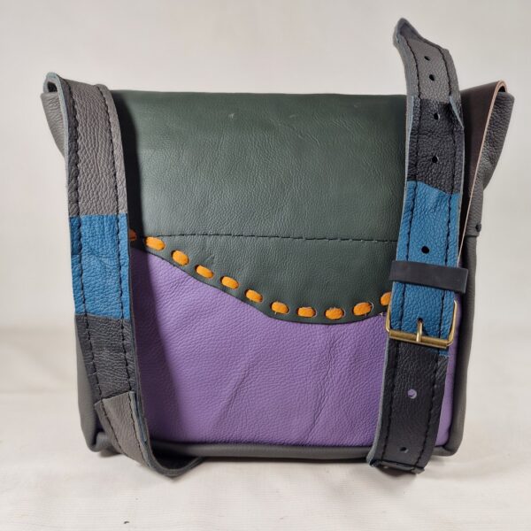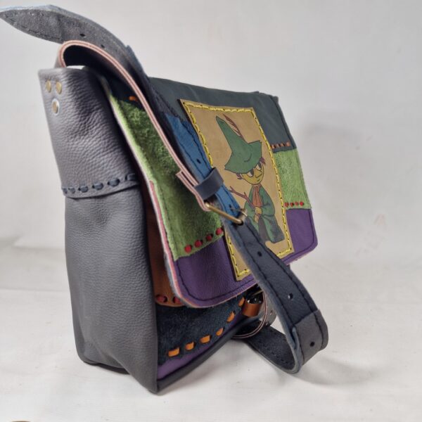Ta torebka powstała w pracowni rzemieślniczej jako pojedynczy, niepowtarzalny egzemplarz. Każdy model tworzony jest z połączenia różnych skór naturalnych, faktur i detali, dzięki czemu nie istnieją dwie identyczne sztuki.