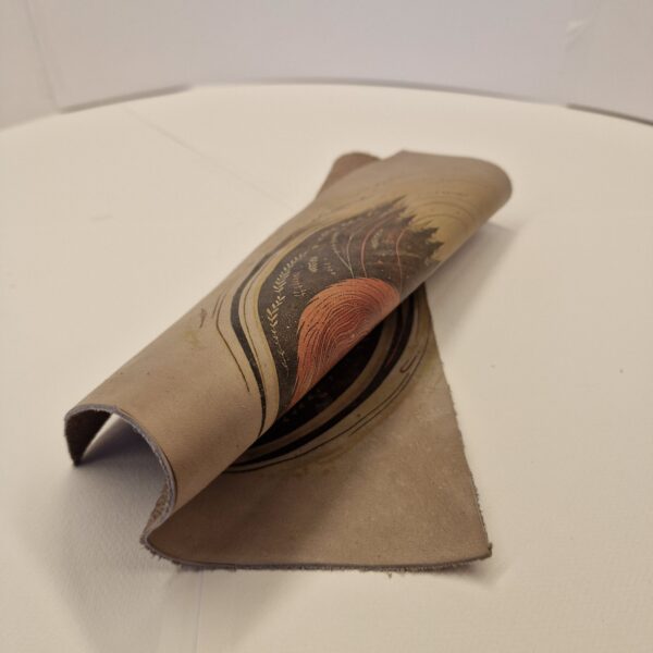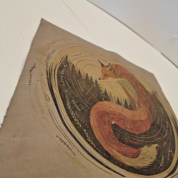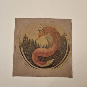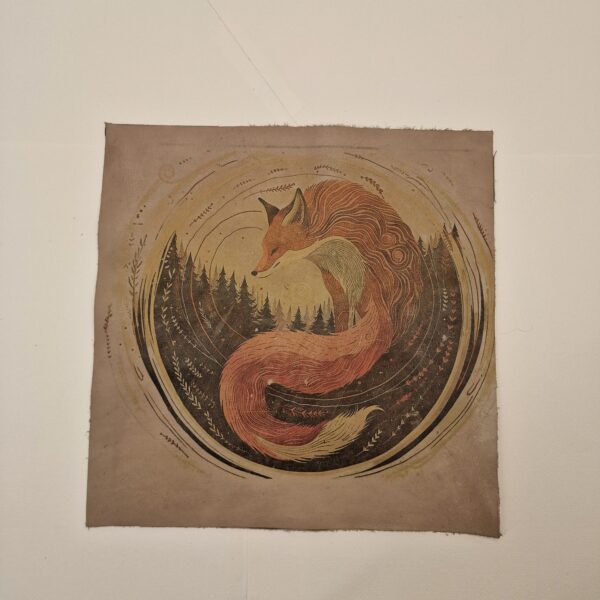 Skórzana naszywka z autorskim motywem lisa zatopionego w leśnych liniach i ciepłych, ziemistych tonach. Delikatnie baśniowy, dekoracyjny wzór został przeniesiony na miękki nubuk, dzięki czemu naszywka zachowuje naturalny charakter materiału i wyrazisty, artystyczny wygląd. Dostępna w kilku rozmiarach.