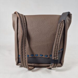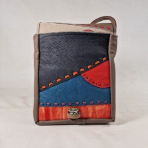 Ta torebka powstała w pracowni rzemieślniczej jako pojedynczy, niepowtarzalny egzemplarz. Każdy model tworzony jest z połączenia różnych skór naturalnych, faktur i detali, dzięki czemu nie istnieją dwie identyczne sztuki.