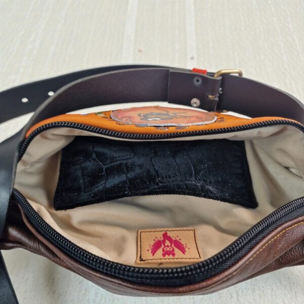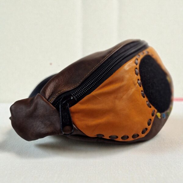 Skórzana nerka z wymienną naszywką, uszyta z naturalnej skóry i zaprojektowana tak, by można było łatwo zmieniać jej charakter. Praktyczny dodatek z artystycznym akcentem i miejscem na własny motyw.