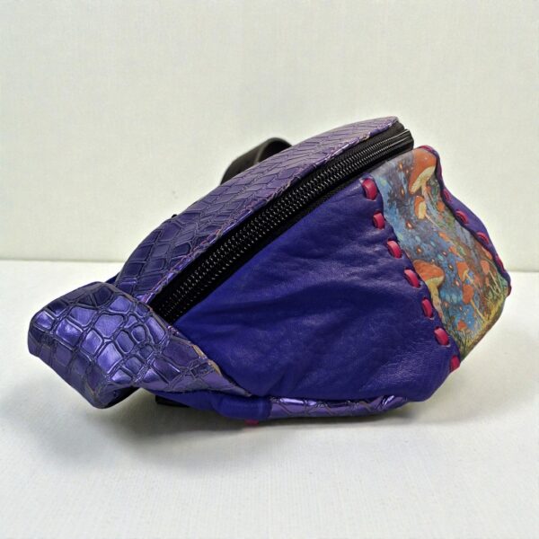 Ten egzemplarz Astrid nosi leśne muchomory w świetle gwiazd. To opowieść o nocnym spacerze, o ciszy podszytej tajemnicą. Fiolet skóry podkreśla baśniowy charakter, a mocne przeszycia przypominają, że magia potrzebuje solidnej konstrukcji.