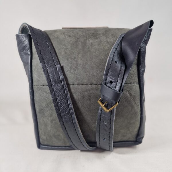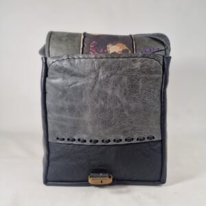 Ta torebka powstała w pracowni rzemieślniczej jako pojedynczy, niepowtarzalny egzemplarz. Każdy model tworzony jest z połączenia różnych skór naturalnych, faktur i detali, dzięki czemu nie istnieją dwie identyczne sztuki.