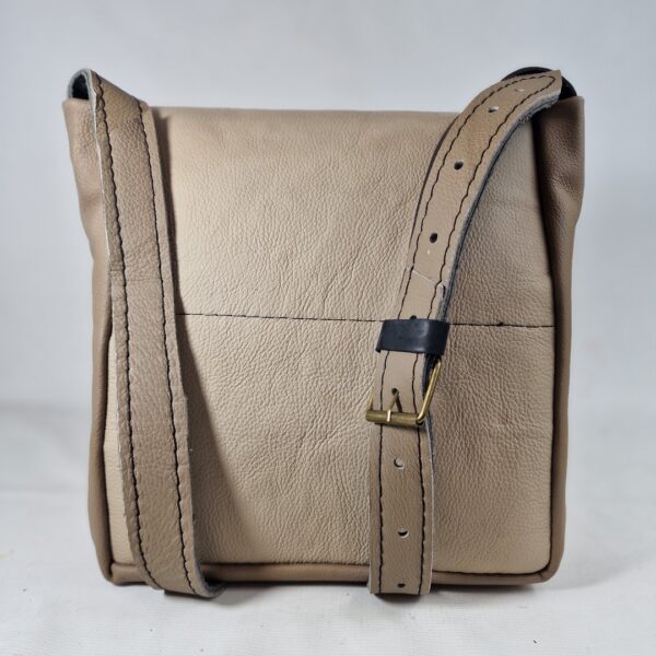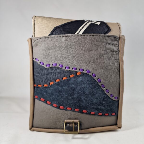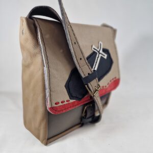 Ta torebka powstała w pracowni rzemieślniczej jako pojedynczy, niepowtarzalny egzemplarz. Każdy model tworzony jest z połączenia różnych skór naturalnych, faktur i detali, dzięki czemu nie istnieją dwie identyczne sztuki.