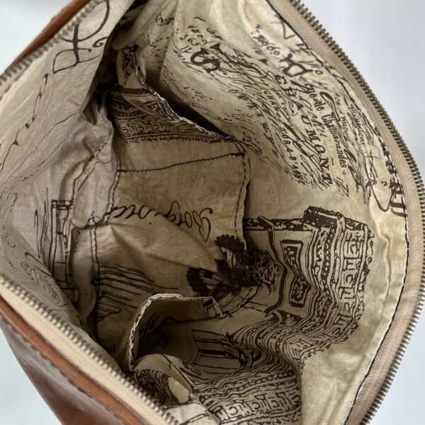tekstylna podszewka w stylu retro z motywem starych map i liter, z kieszonkami wewnętrznymi