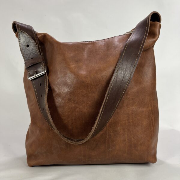 ręcznie szyta torba skórzana z grafiką autorską