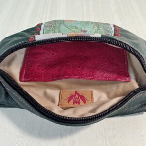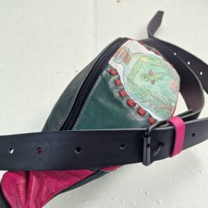 Ten egzemplarz Astrid nosi małego smoka zamkniętego w butelce jak sekret z dzieciństwa. To strażnik wyobraźni i przypomnienie, że magia nie znika – tylko zmienia formę. Zieleń skóry koi, a czerwone przeszycia dodają tej historii życia.
