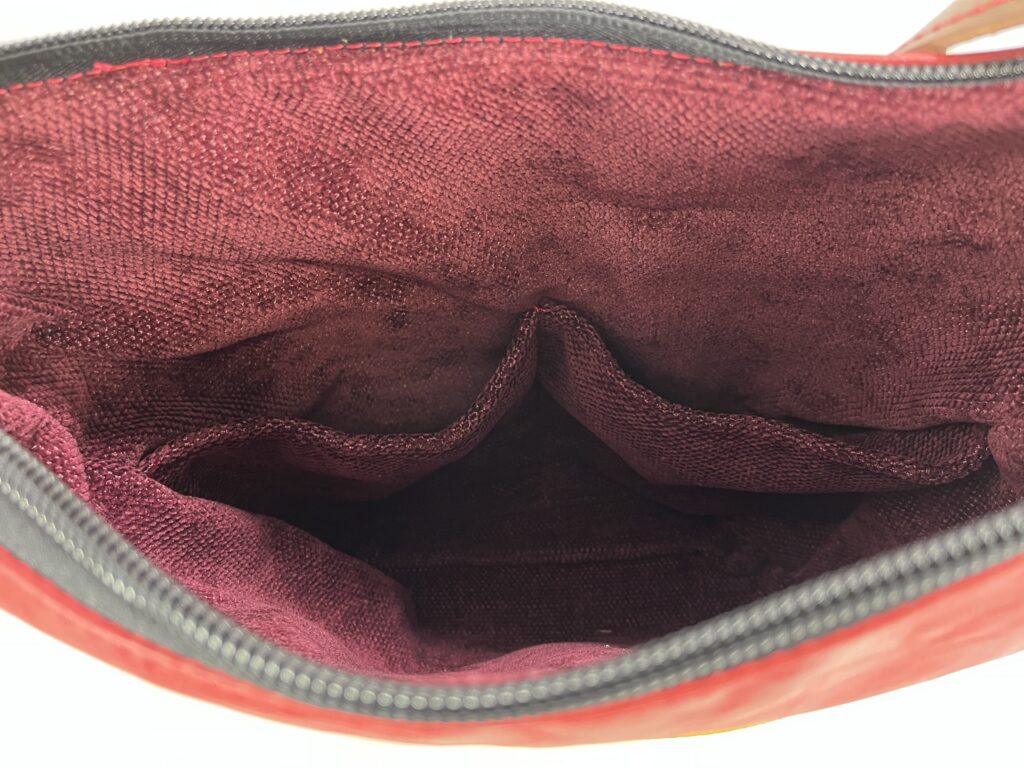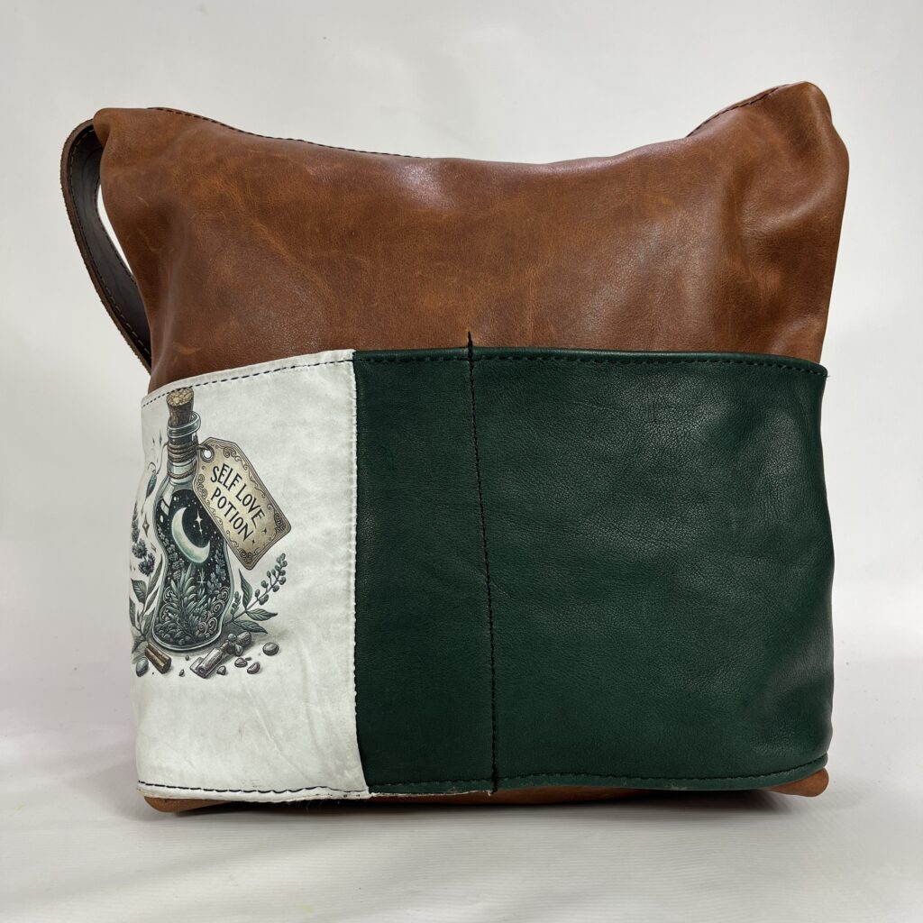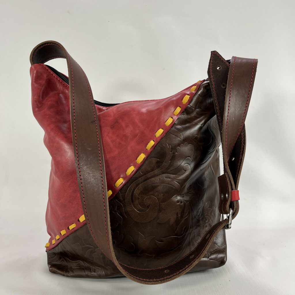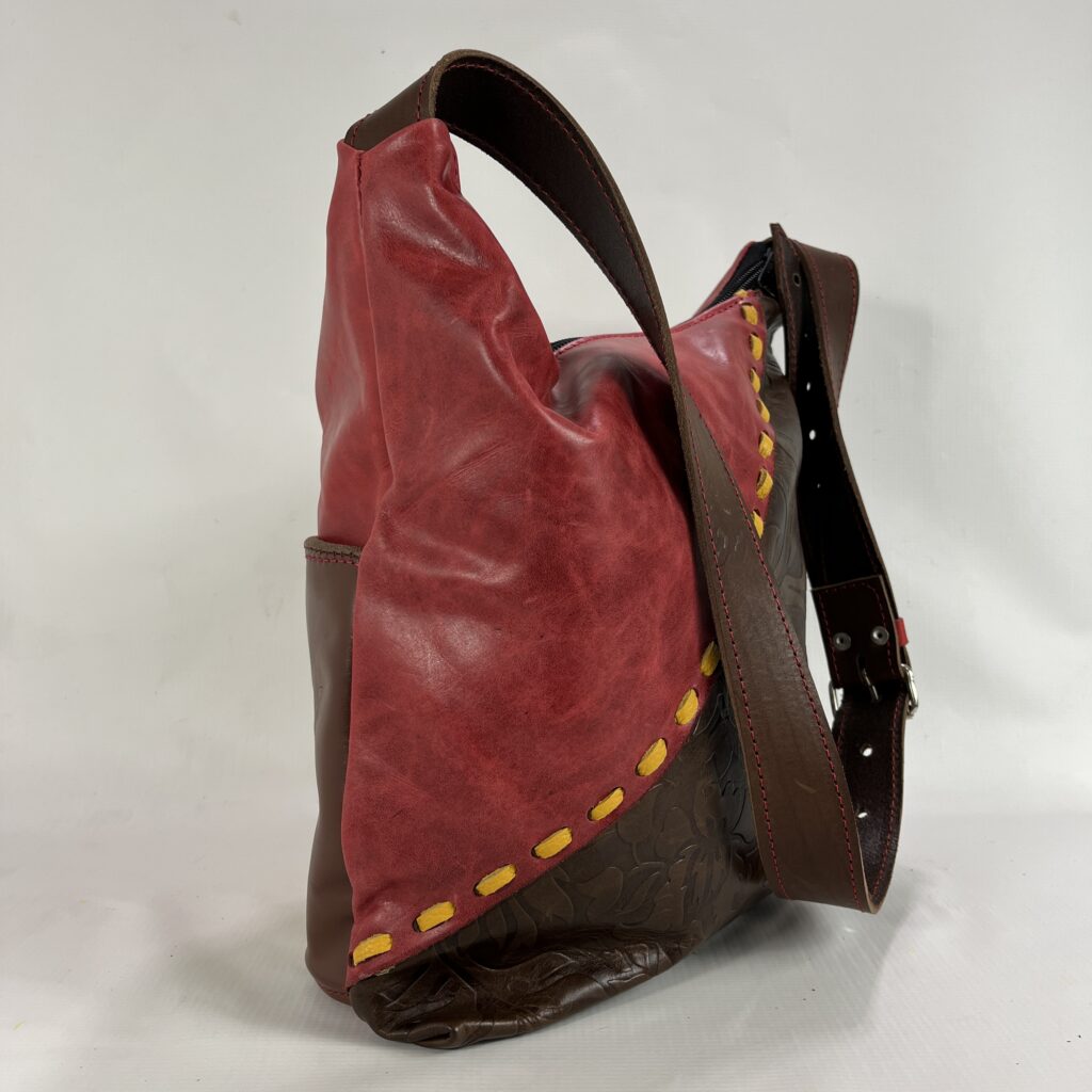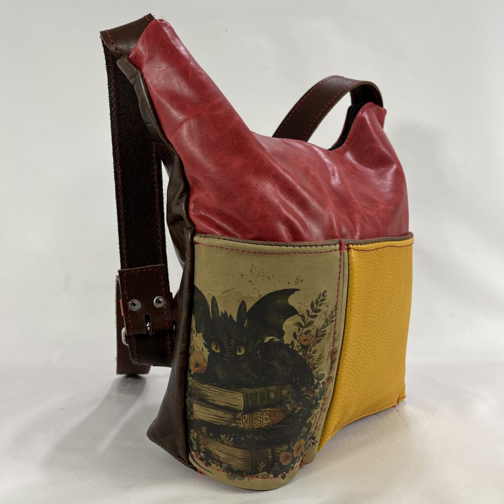 Ręcznie szyta torba ze skóry naturalnej, zdobiona autorską aplikacją graficzną. Lekka, pojemna i wyjątkowa — każda sztuka powstaje indywidualnie w mojej pracowni.Wyposażona w regulowany pasek, kieszenie wewnętrzne i zewnętrzne oraz podszewkę z tkaniny w głębokim bordowym kolorze.Symboliczna, trwała i niepowtarzalna — stworzona, by towarzyszyć Ci przez lata.