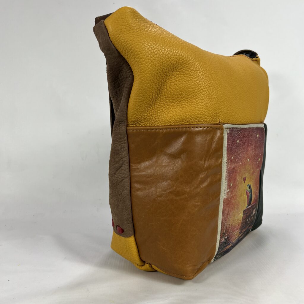 Ręcznie szyta torba ze skóry naturalnej, zdobiona autorską aplikacją graficzną. Lekka, pojemna i wyjątkowa — każda sztuka powstaje indywidualnie w mojej pracowni.Wyposażona w regulowany pasek, kieszenie wewnętrzne i zewnętrzne oraz podszewkę z tkaniny z motywem starego pamiętnika.Symboliczna, trwała i niepowtarzalna — stworzona, by towarzyszyć Ci przez lata.